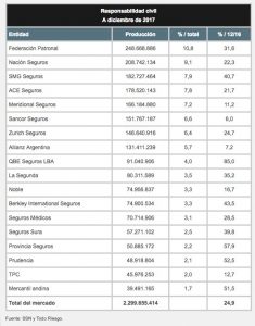 La producción del ramo responsabilidad civil se incrementó un 25% a diciembre último. Entre julio y diciembre de 2017, el primaje del ramo responsabilidad civil llegó a los 2.299,7 millones de pesos, un 24,9% más que a diciembre de 2016.